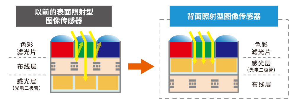 ?背面照射型傳感器的特點(背照式 = Back side illumination,簡稱:BSI)